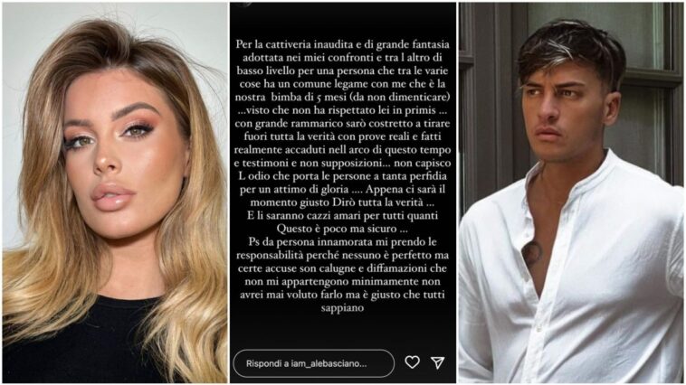 Dopo la recente intervista di Sophie Codegoni a Verissimo, Alessandro Basciano ha preso la parola su Instagram. Parlando con Silvia Toffanin, l’ex partecipante al Grande Fratello ha descritto la conclusione della loro relazione, sottolineando che era stato tradito dalla sua precedente compagna e che era stato frequentemente mancante di rispetto. Nonostante ciò, Basciano ha rilasciato una dichiarazione tramite un post, proclamando di essere pronto a “mostrare attraverso fatti concreti e verifiche.