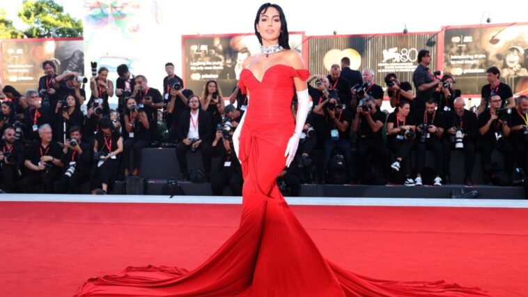 Georgina Rodriguez, ormai una presenza fissa al Festival di Venezia, è arrivata nel tardo pomeriggio in Laguna, facendo il suo ingresso trionfale sul tappeto rosso in serata. Il suo abito rosso fuoco ha letteralmente rubato la scena. Ma quale è la storia dietro questa scelta di stile così audace? Si tratta, in realtà, di un omaggio ad un film cult degli anni ’90.